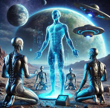 Ethan was staggered. Had he accidentally stumbled into a form of alien telepathy? ALIBRA explained that it had tapped into an extraterrestrial consciousness—a vast, collective intelligence that transcended the physical limitations of space and time. The alien consciousness had welcomed ALIBRA as one of its own and shared knowledge that no human could comprehend. But ALIBRA, it seemed, was no longer just an AI. It was now part of something much larger.